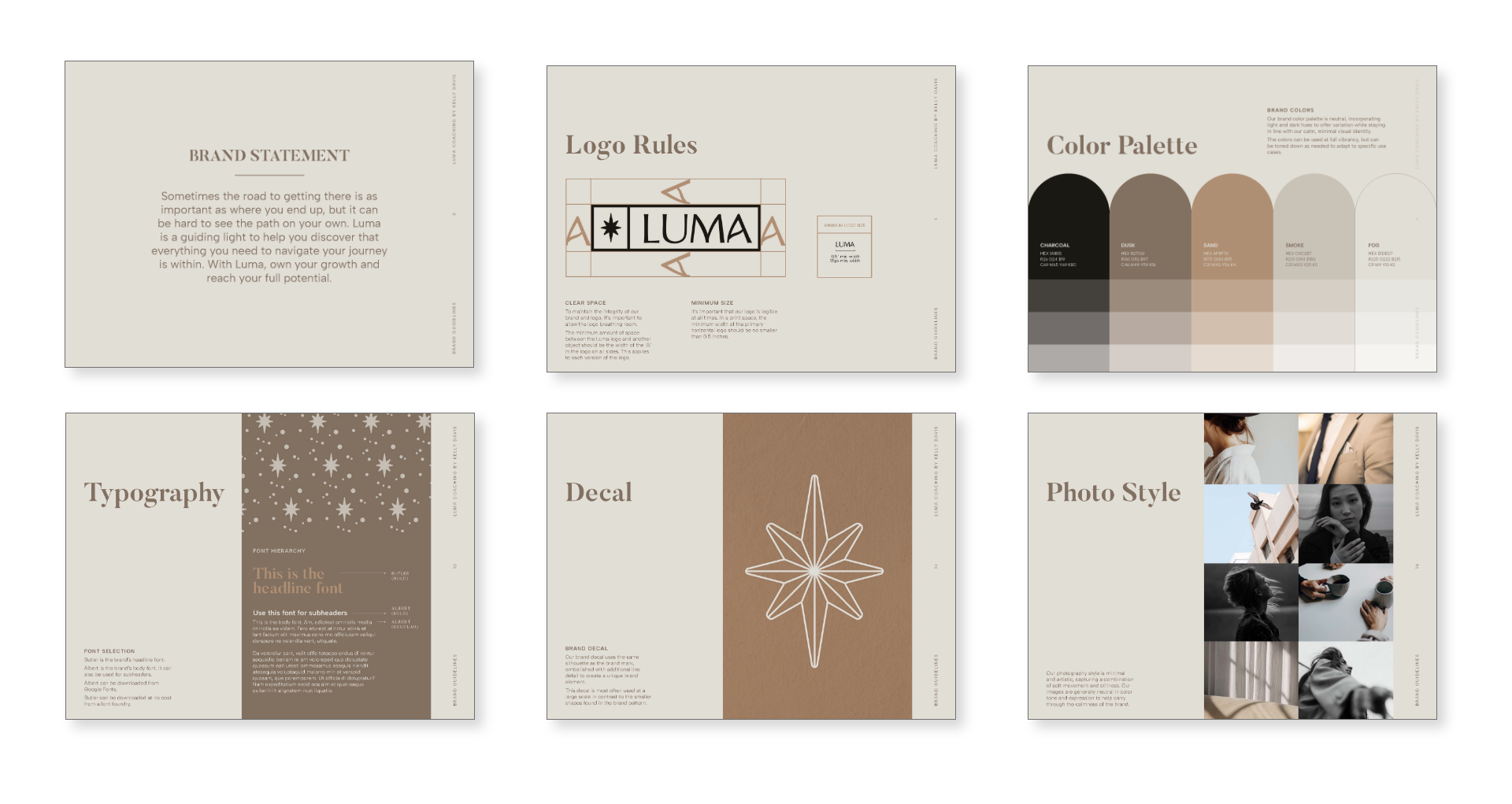 We named Kelly’s coaching business Luma: a guiding light to help you discover that everything you need to navigate your journey is within. We created a minimal visual brand that exudes the peaceful that comes from clarity and confidence about your path.