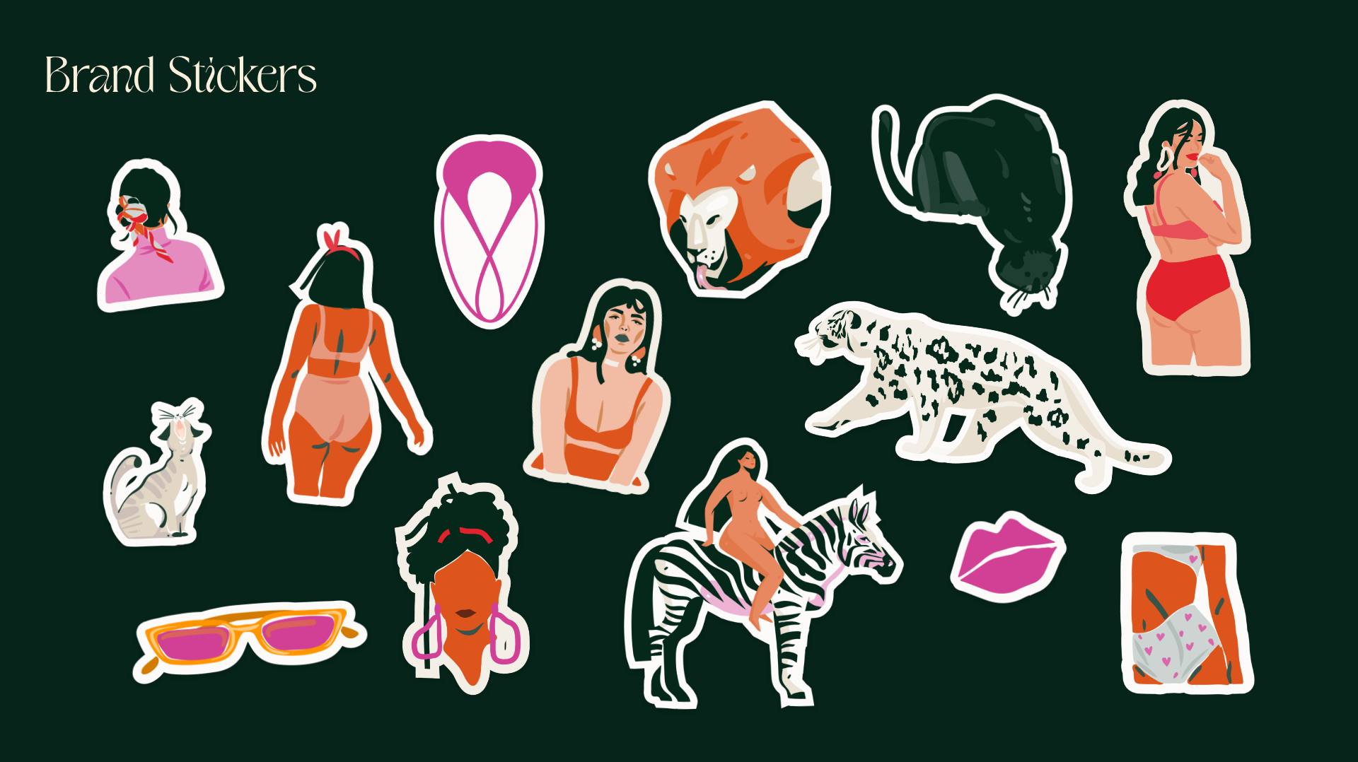 The new visual branding is moody and fun. The branding features yonic overtones in the logo and with the thematic imagery of flowers and cats. We created a custom icon library of stickers using these themes, landed on a dark, gemstone-inspired color palette, and applied the new brand to some bold collateral pieces.
