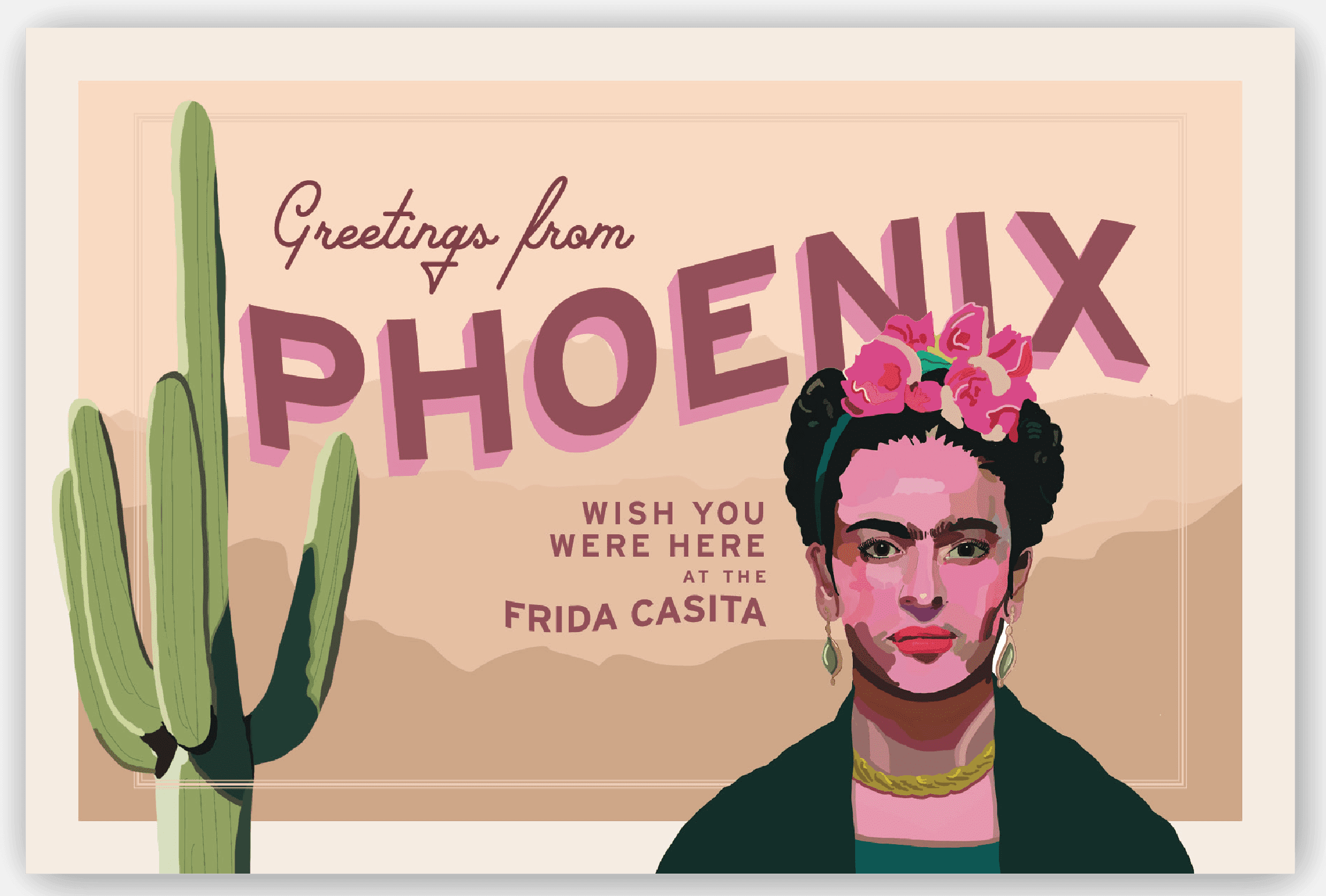 Custom illustrated postcard for an Airbnb in Phoenix, AZ