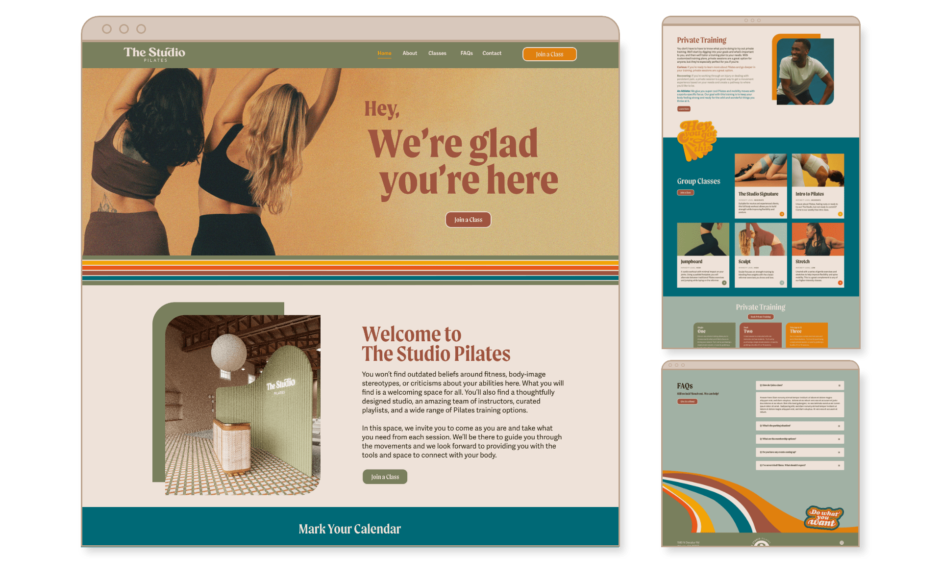The Studio Pilates is a fitness studio in Atlanta’s Emory Village, built around bold energy, inclusivity, and connection. Founder Kelly came to us with a vision for a brand that broke the typical Pilates mold. She wanted something approachable but full of personality. While her interior designer was bringing the physical space to life, we were crafting a brand to match: cohesive with the in-studio experience, flexible across digital and print, and strong enough to shine on merch in The Studio’s retail corner.